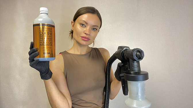 Биопилинг наносится методом мелкодисперсного распыления (как и лосьон для моментального загара), не требует смывания водой, высыхает на коже за пару минут.