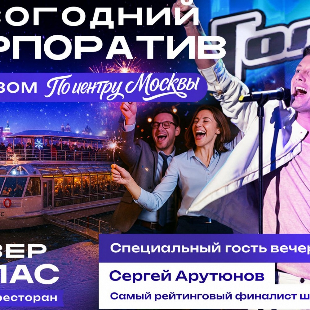 Билет на новогодний корпоратив 18.12.2025 и 19.12.2025 с круизом и развлекательной программой на теплоходе «Ривер Палас»