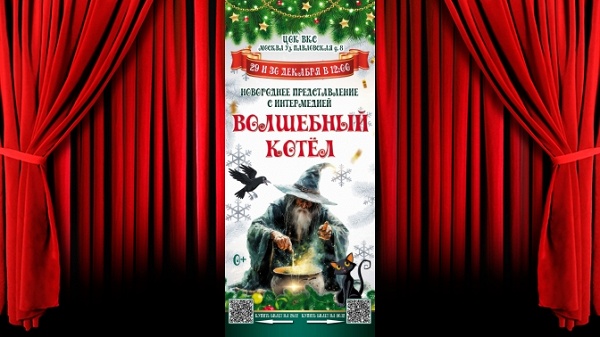 Билет на новогодний спектакль «Волшебный котёл» на сцене Дома офицеров со скидкой 30%
